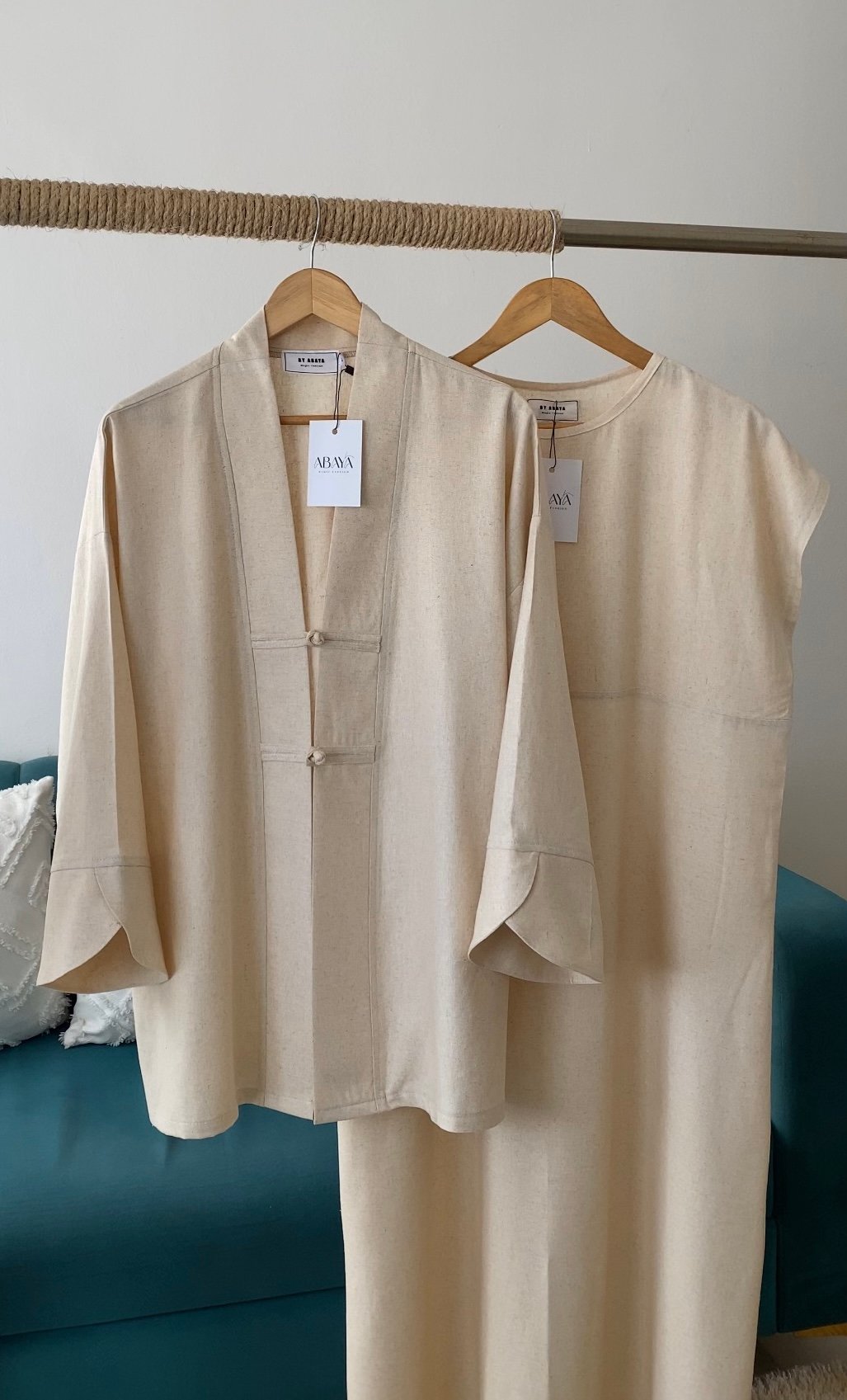 Paired with a matching inner dress, this set provides full coverage while remaining lightweight and easy to wear. Ideal for both everyday elegance and special moments, it reflects a quiet sense of luxury rooted in simplicity.